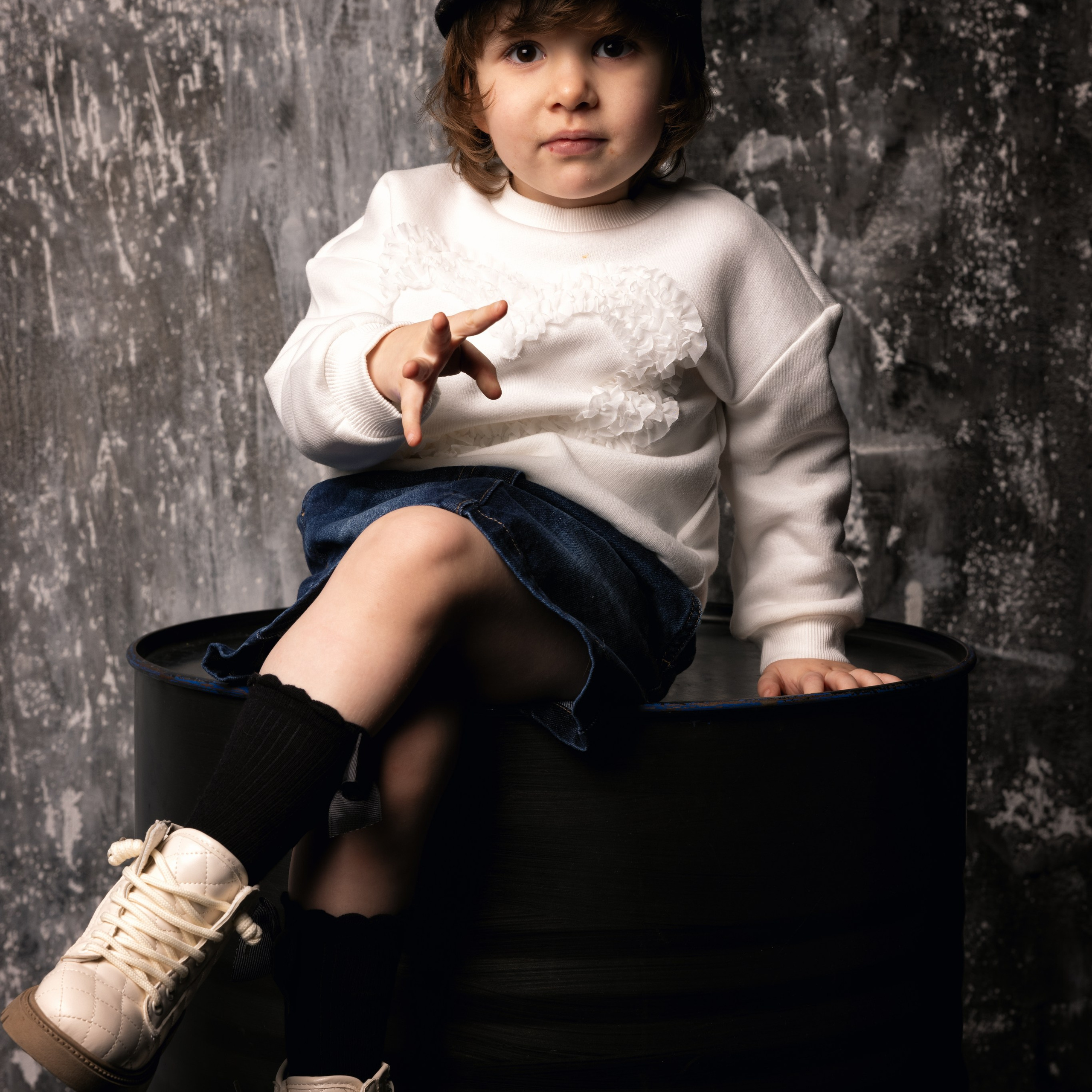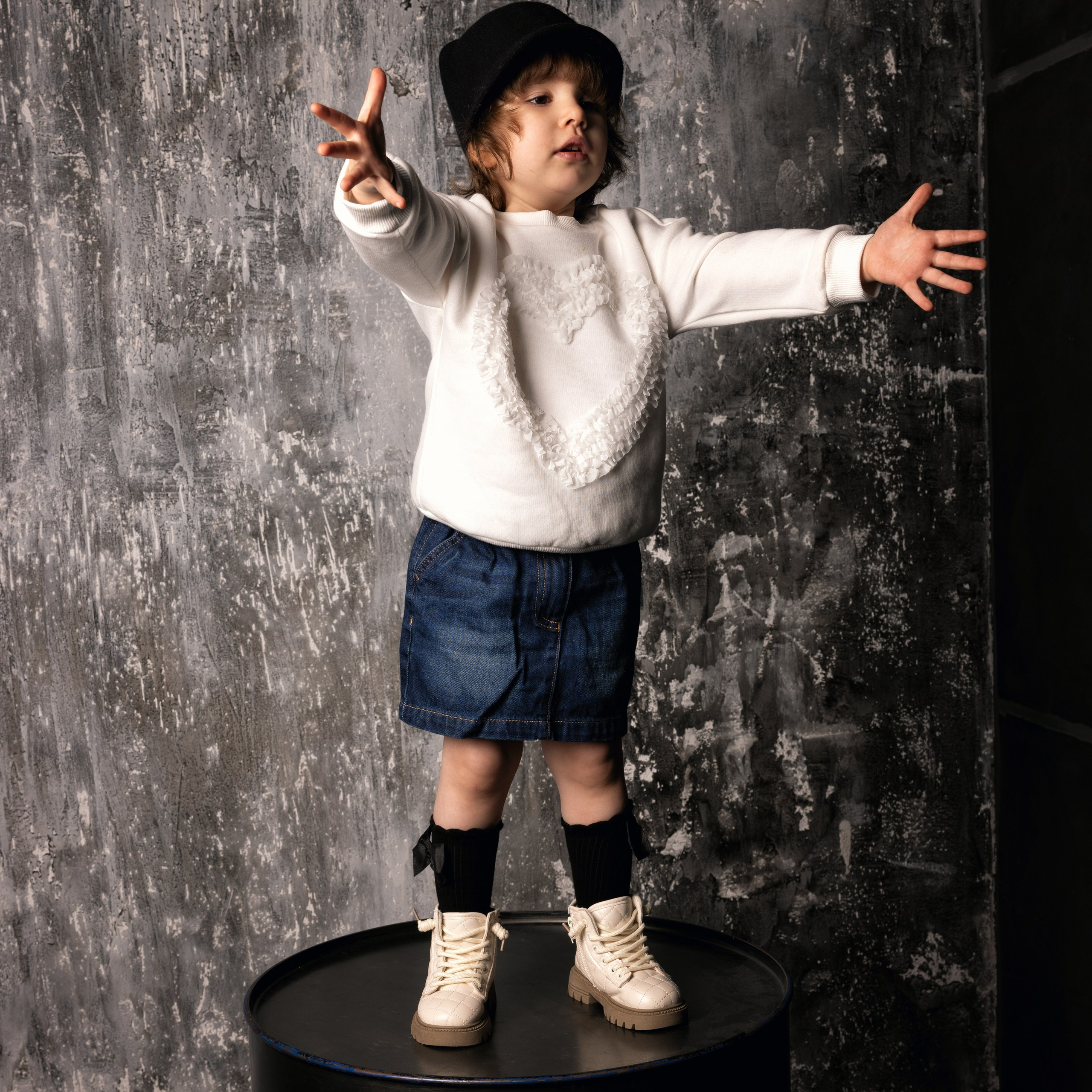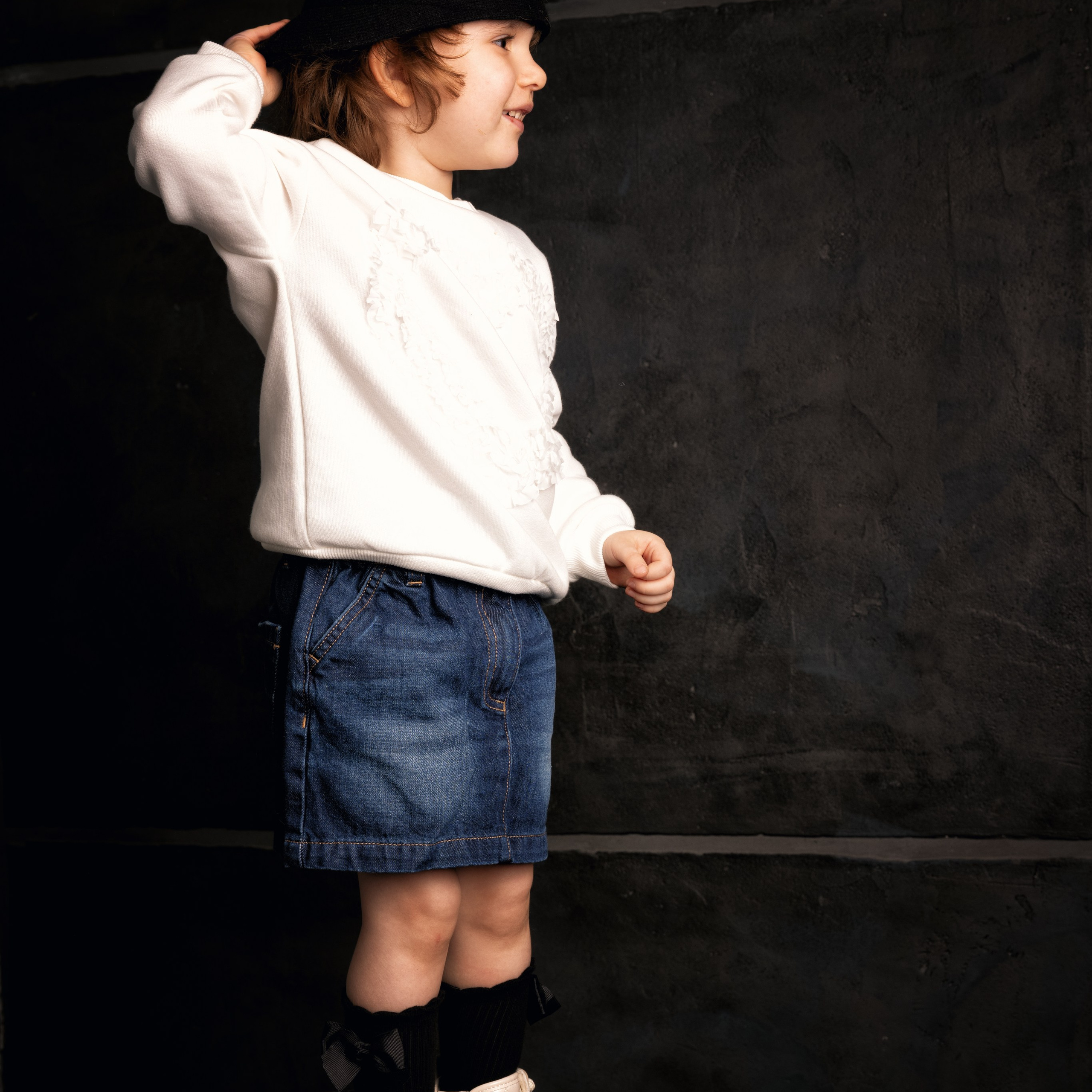 Подумано-сделано. Мы приехали в фотостудию Room35 и. Большая площадь фотостудии, дружественная обстановка, отсутствие запретов (туда не ходи, тут не трогай и тд) сделали своё дело и все получилось как надо. Единственное за чем мы следили — это за лестницами, все же Маша еще маленькая и жена ее подстраховывала.
